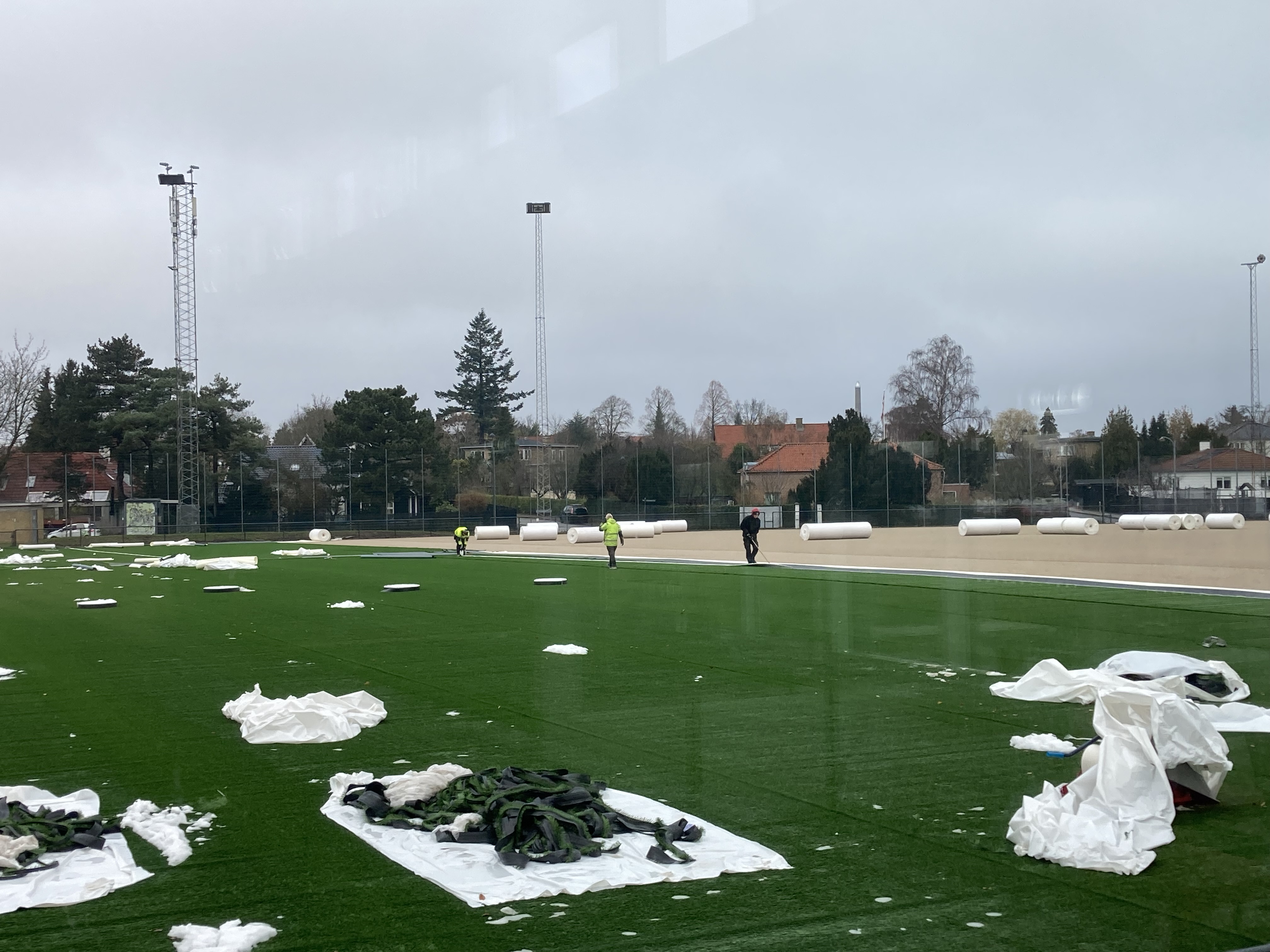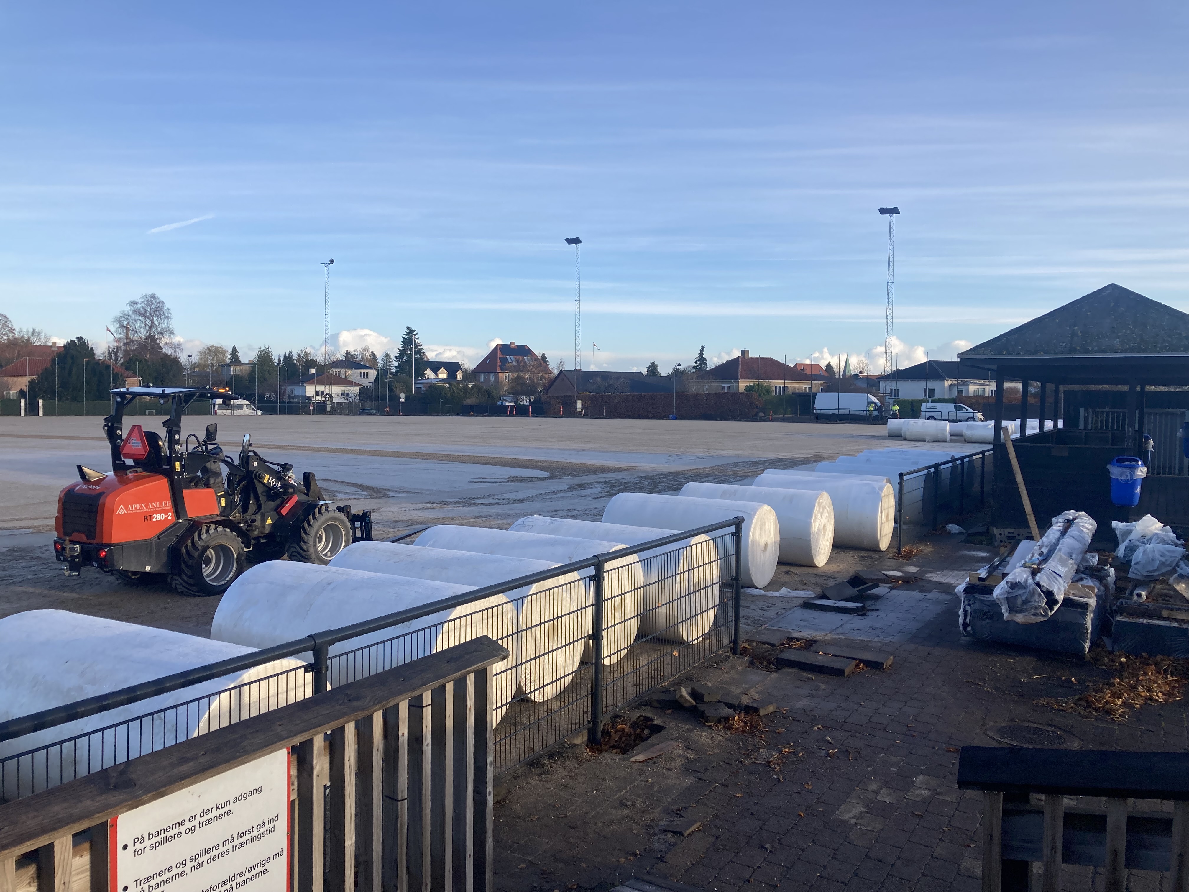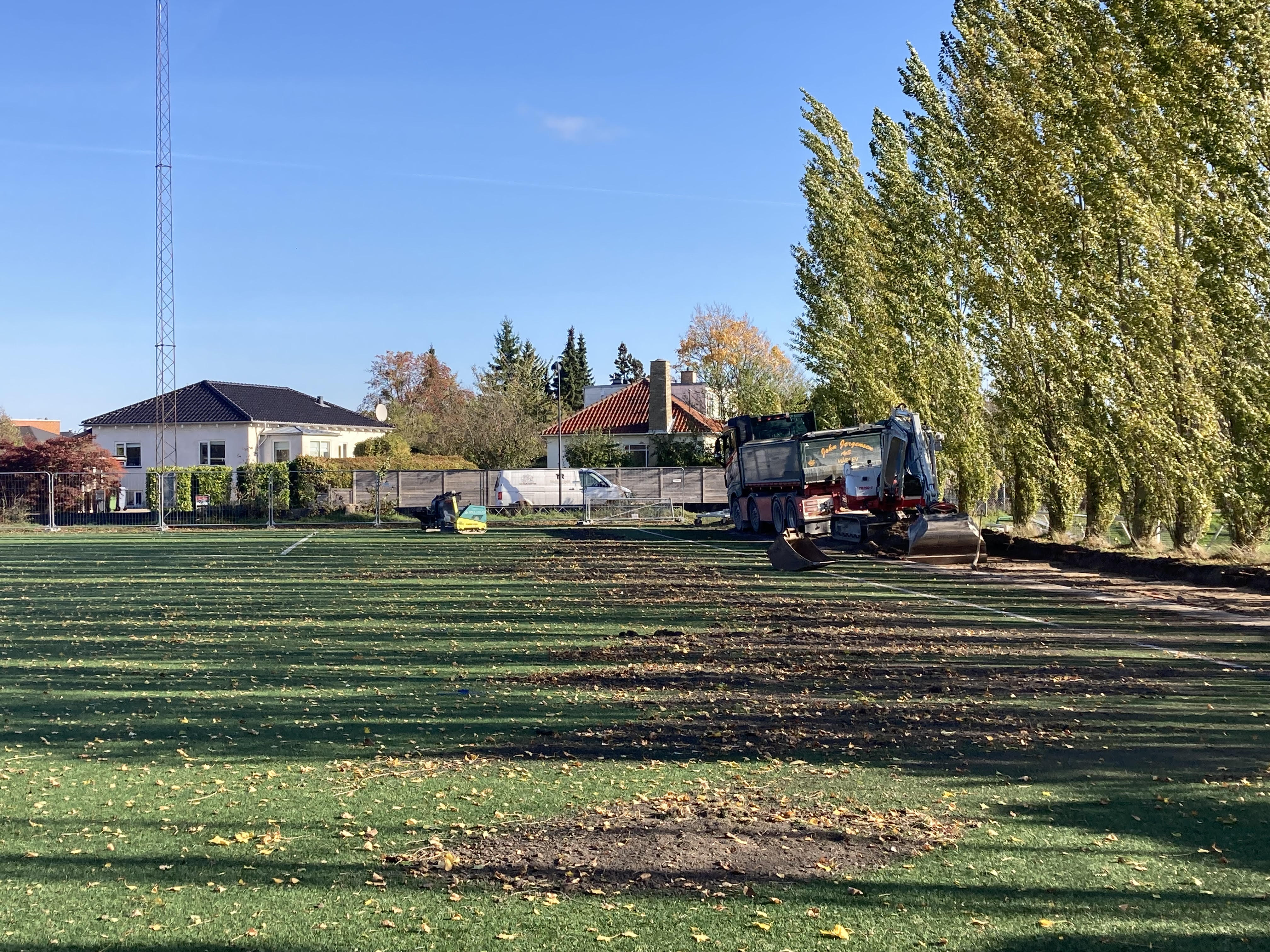 Projektet kører derudad. Trærødderne er fjernet og underlaget gjort klart til, at der på mandag startes op på at lægge selve kunstgræstæppet som planlagt efter tidsplanen. Monteringen af selve kunstgræsset er sat til at skulle foregå i uge 47 og 48. Selvom tidsplanen lige nu kører efter planen med afslutning 8. december, så er det også vigtigt at understrege, at de næste to uger også er noget af det mere "kritiske" arbejde i projektet, som kan blive påvirket af vind og vejr, som kan påvirke tidsplanen. Derfor kan det være, at vi i løbet af uge 47 allerede kan melde om mindre udsættelse af tidsplanen. Lige så snart det evt. skulle ske, så kommunikerer vi det ud.