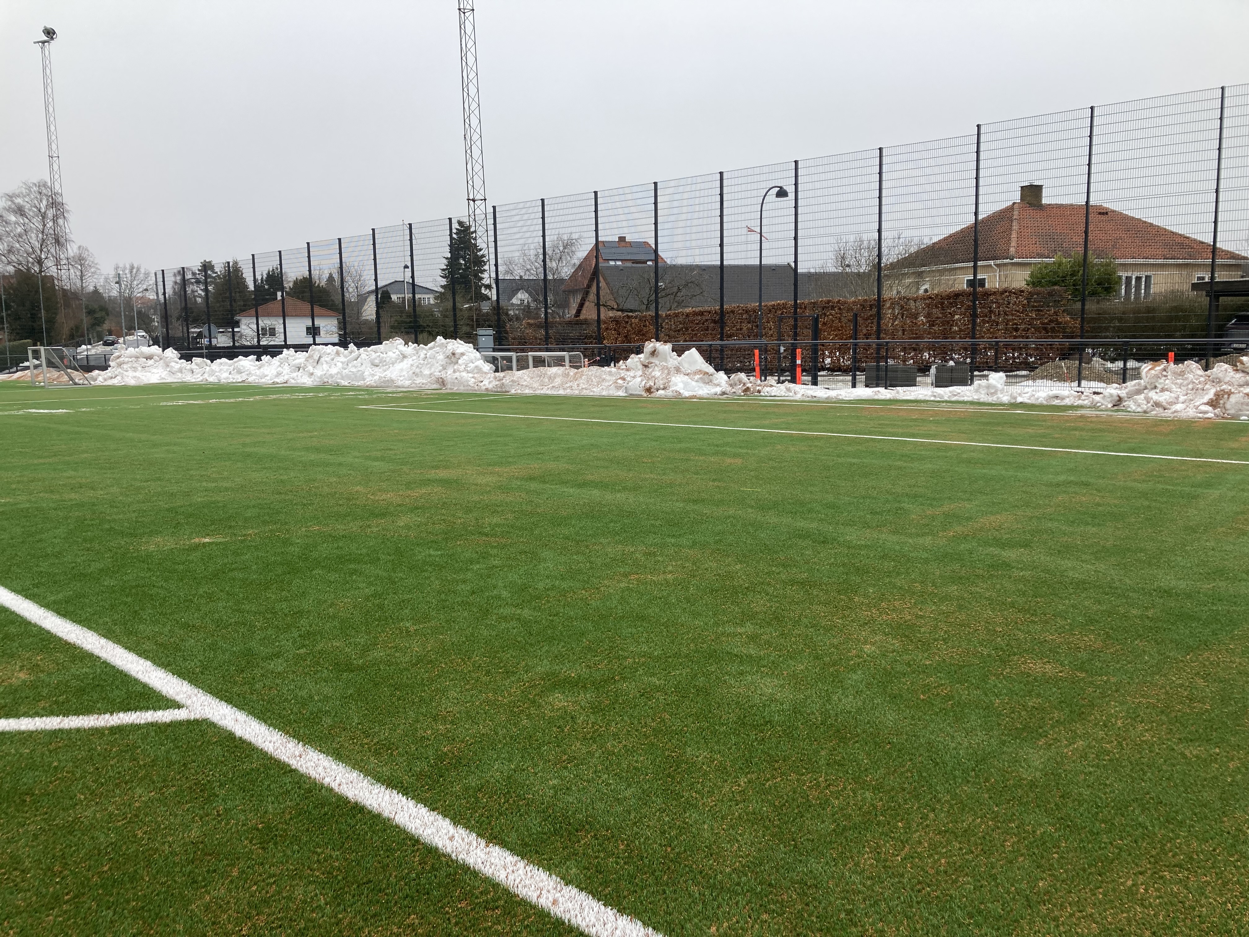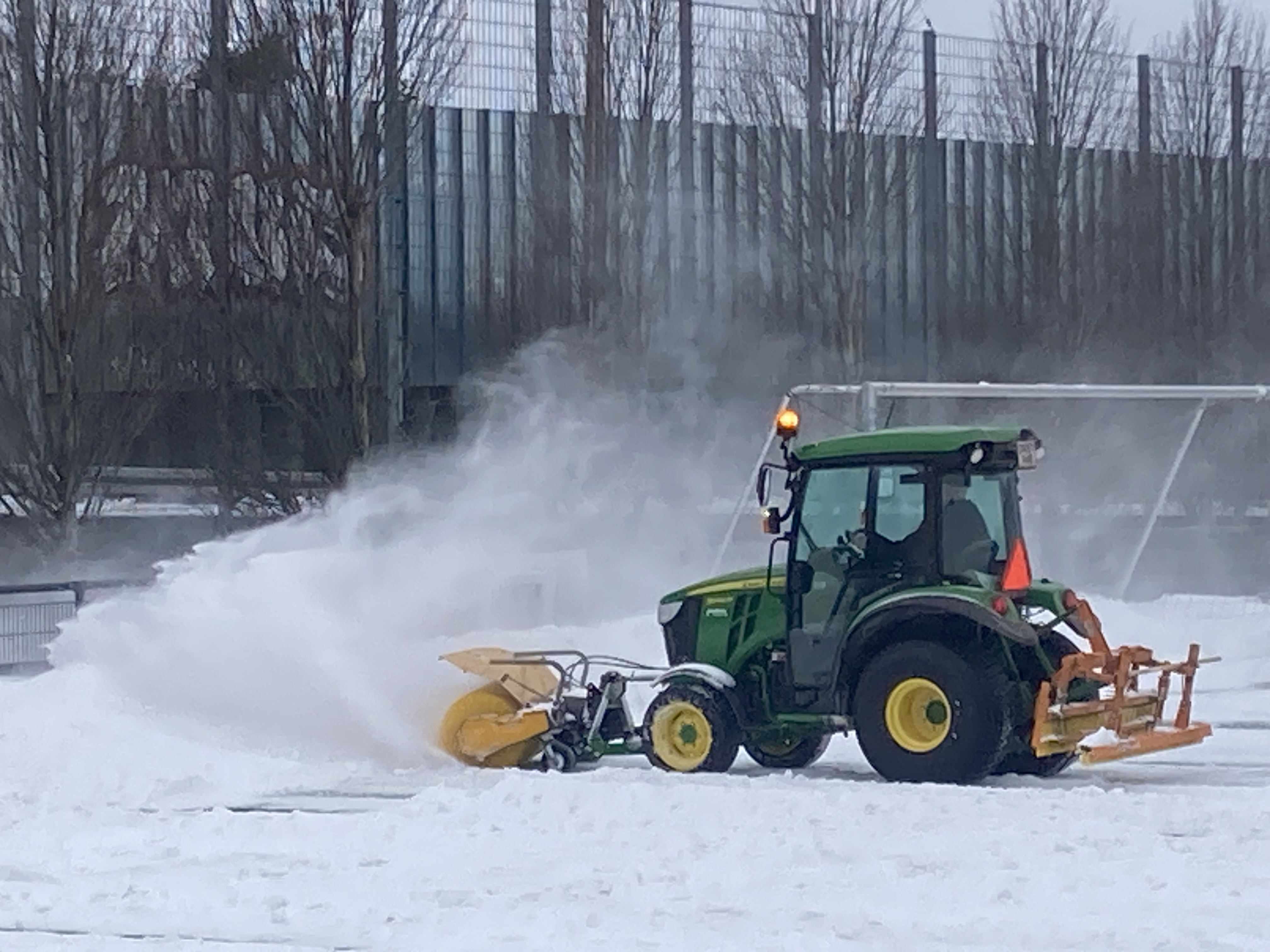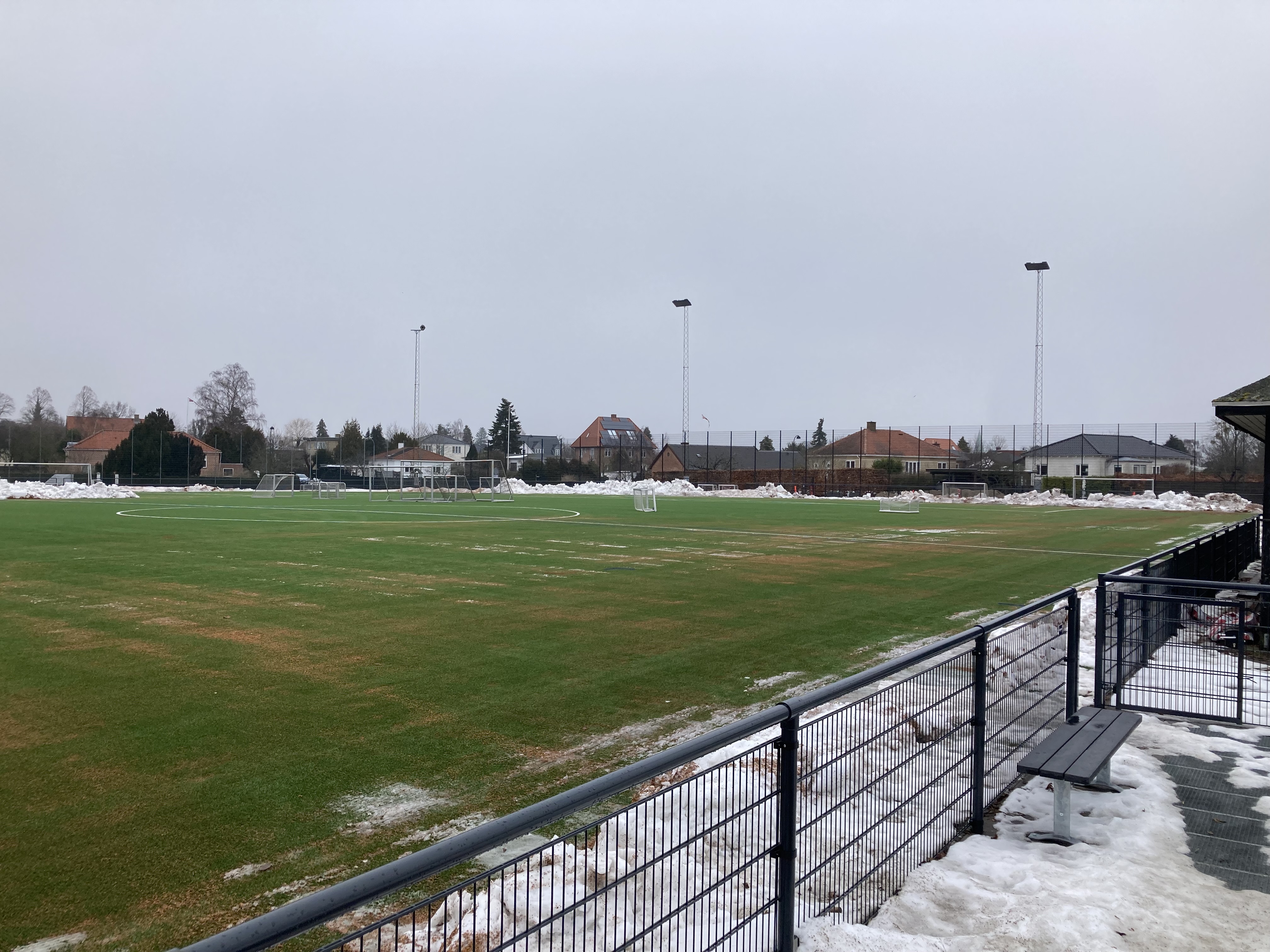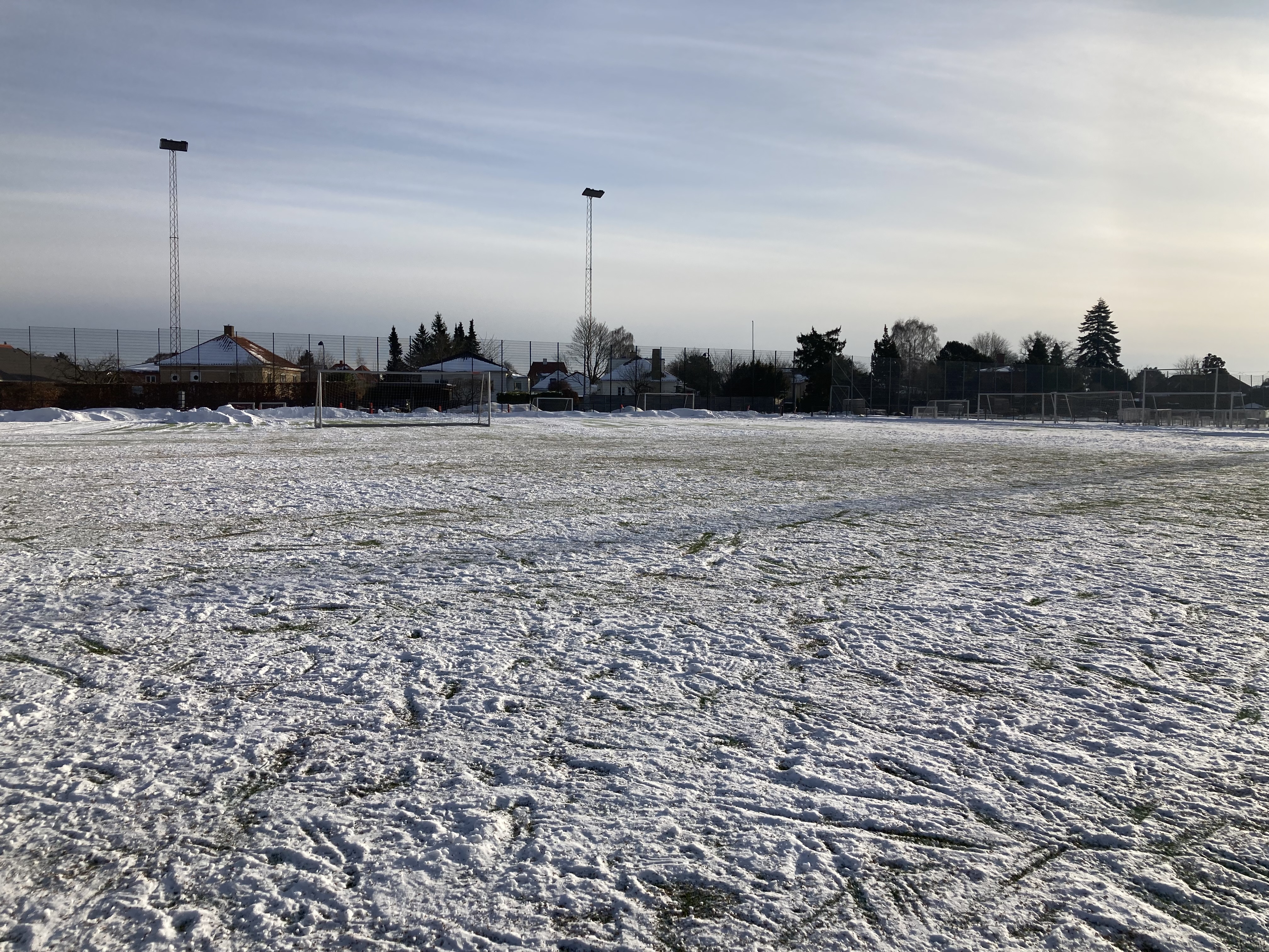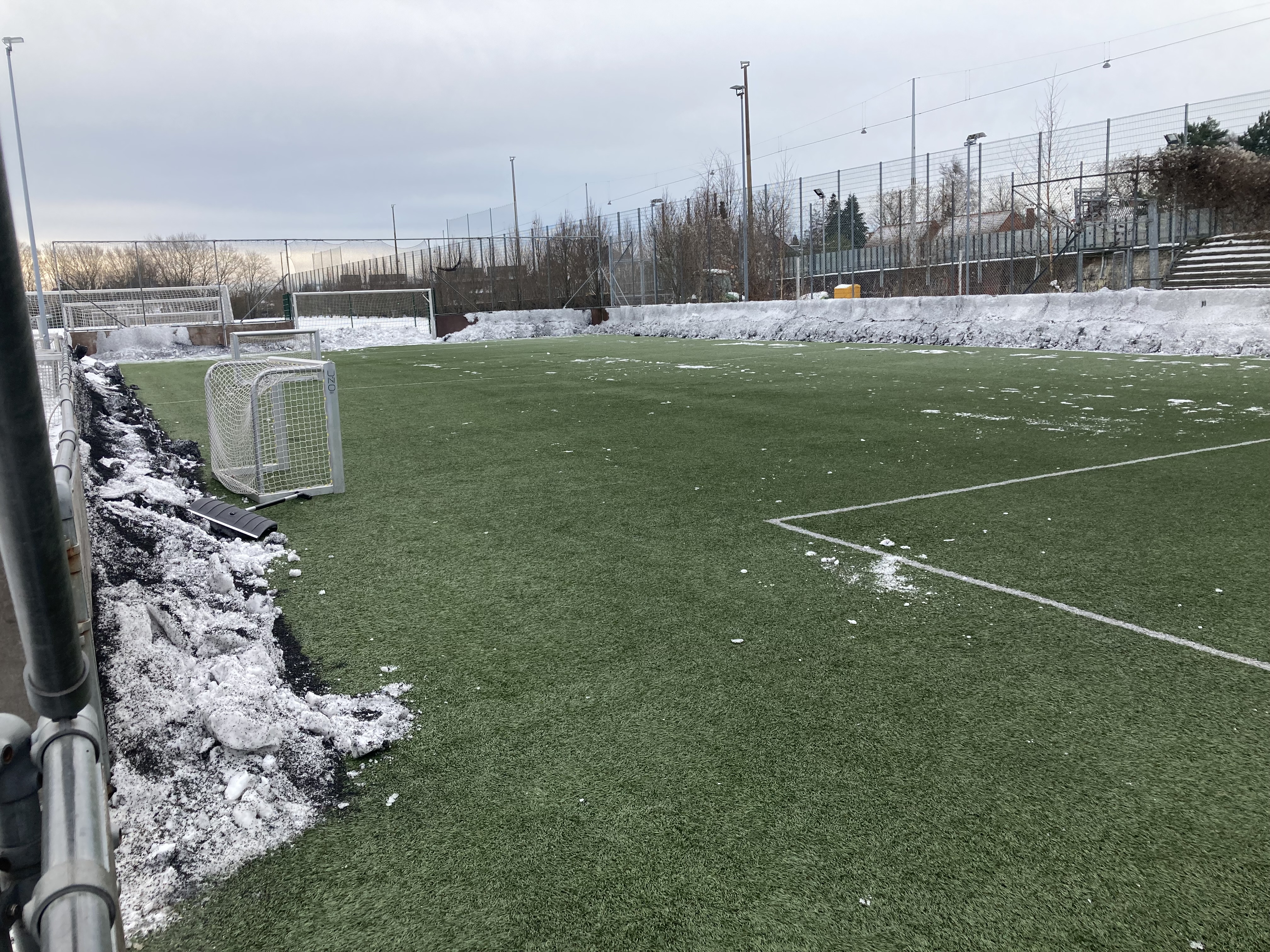 Snerydderne har været her henover frokost og fjerne snebunkerne i feltet og langs sidelinjen. Super godt, så nu kan der trænes på hele banen.